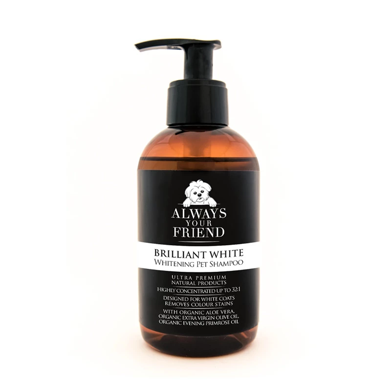 Elimina la comparsa di macchie ingiallenti e mette in evidenza la naturale luminosità del manto bianco.