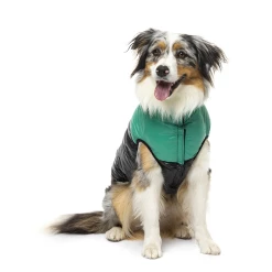 Inoltre il piumino è dotato di un apertura a zip, ideale per agganciare la pettorina o il collare.
