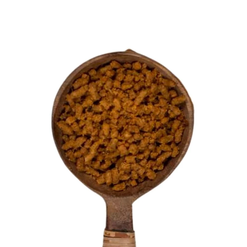 100% carne di capra macinata ed essiccata: 40% muscolo, 20% rumine, 20% cuore, 8% fegato, 5% rene, 5% milza, 2% farina di ossa di capra.