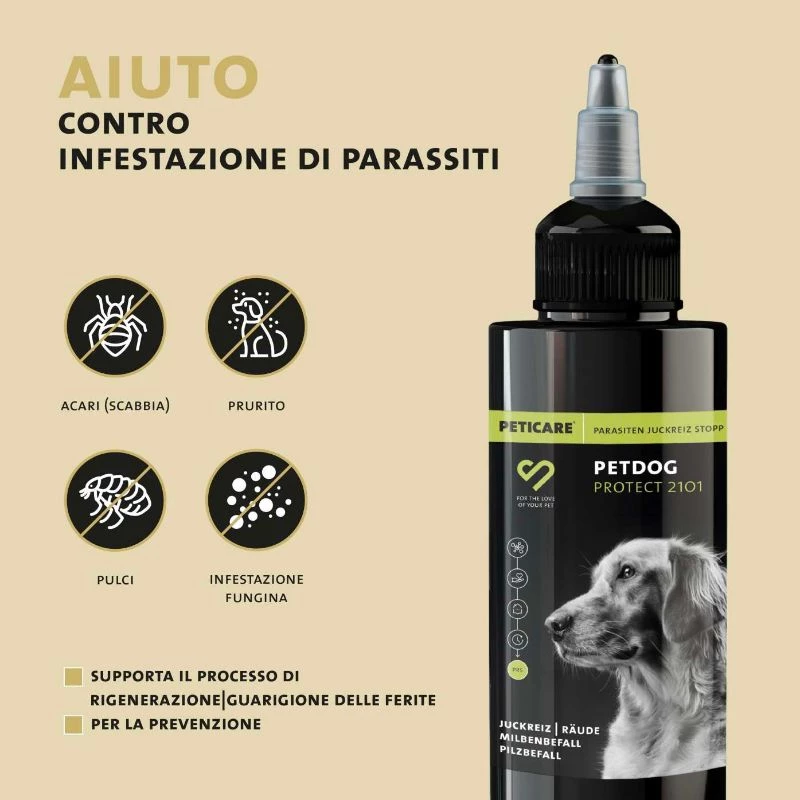 Un prodotto altamente efficace, completamente BIOLOGICO, tecnologico e di alta qualità per la cura delle infestazioni da acari, funghi e pulci, senza ingredienti chimici dannosi.