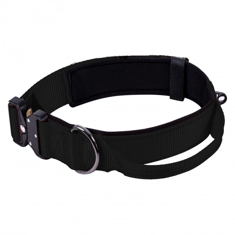 Il collare ha una robusta maniglia per una maggiore controllo e può essere facilmente regolato con la chiusura a sfioramento.